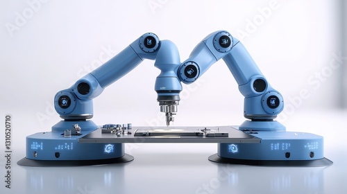 robot, automation, manufacturing, technology, machine, assembly, precision, engineering, electronic, circuit board, robotic, high technology, artificial intelligence, ai, computer, digital, innovation, industry, production, factory, work, process, system, mechanical, device, tool, equipment, hardware, automatic, efficient, precise, clean, modern, minimal, studio shot, white background, light blue, metal