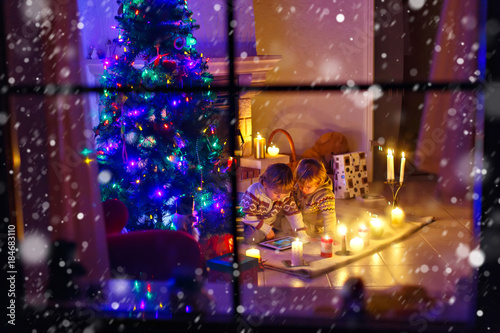 tablet, cyberspace, game, addiction, new, 2, twin, boy, children, toddler, blond, family, love, cosy, fire, candle, christmas, time, celebration, holiday, playing, brother, children, chimney, christmas tree, december, decoration, fairy tale, festive, fireplace, fireside, gift, home, romantic, scene, seasonal, sibling, thoughtful, together, friends, talking, happy, happiness, night, eve, evening, dark, light, illumination