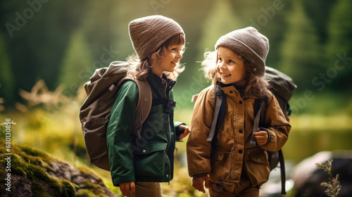 Two little child's outdoor adventures: Show the excitement of hiking, camping, or exploring nature during the summer months