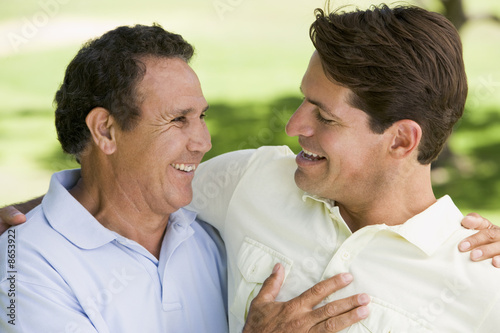 father, son, countryside, outside, outdoors, park, enjoying, 40s, 60s, affection, affectionate, hispanic, day, daytime, male, field, full-length, grass, horizontal, love, loving, middle-aged, people, 40s, 60s, two people, man, man, together, father, eltern, children, having fun, happy, smiling, laughing, hugging, embracing, talking, chatting, adult, grown, up