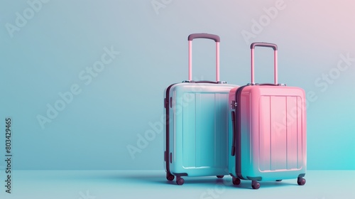 Two modern suitcases, one pink and one blue, on a smooth gradient background.