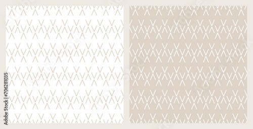 Two Monochrome Vector Seamless Patterns. Striped Check Mark Pattern. Abstract Ethnic Seamless Pattern. Boho Tribal Geometric Background.