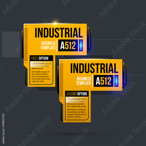 Two options template in yellow industrial techno style on dark gray background