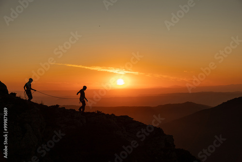 two people, silhouette, sunset, dusk, peak, mountaineer, climber, help, team, couple, confident, guide, rope, abyss, down, copy space, achievement, free, dawn, hiking, walking, serene, meditation, lens, picture, peaceful, hobby, desert, emotion, journey, setting, sunrise, horizon, success, freedom, standing, alone, extreme, professional, scenery, sunlight, side, people, sport, cliff, copy space, trekking, high, hill