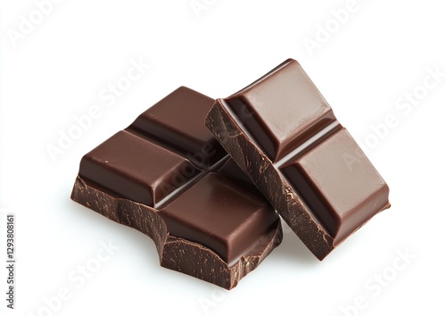 chocolate, dark chocolate, sweet, dessert, treat, food, snack, delicious, tasty, brown, rich, square, piece, bite, broken, texture, photo, studio shot, white background, isolated, confectionery, culinary, epicure, candy, sweetness, indulgence, craving, appetising, tempting, richness, smooth, creamy, decadent, luxury, dark, bitter, intense, favor, aroma, fragrance, food photography, high-quality, professional