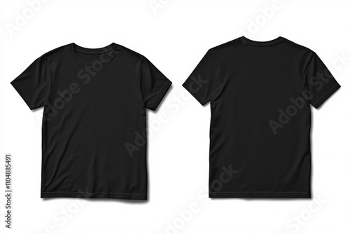 Two plain black t-shirts displayed back-to-back, showcasing a simple and versatile clothing option for various styles.