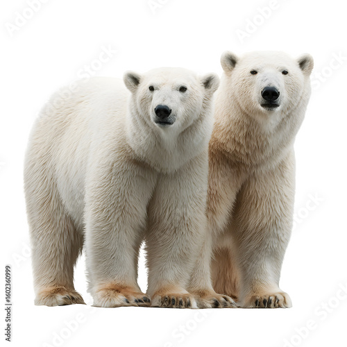 Two polar bears standing side by side like a couple and soft fur and relaxed expression and warm wildlife moment and isolated white background Batch realistic clean bright simple modern stock imag