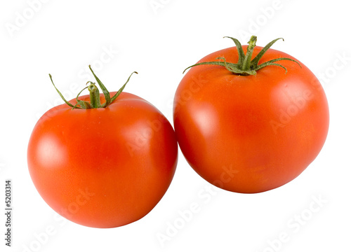 tomatoes, red, 2, object, vegetable, green, food, isolated, white, background, closeup, health, vegetarian, ripe, organic, healthy, fresh, detail, raw, bright, full, circle, round, curve, row