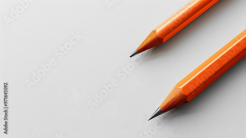 Two sharp orange pencils on a minimalist white background, ideal for stationery banners, creative designs, or school-related materials with copyspace