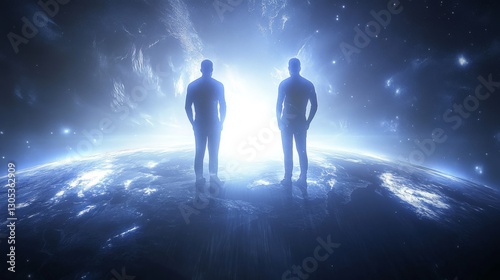 silhouette, universe, exploration, 2, contemplate, huge, space, light, mystery, cosmic, celestial, dimension, silence, ambience, galaxy, vision, creation, dreamful, presence, darkness, journey, awareness, escape, understand, adventure, transcendence, existence, perspective, beauty, essence, connection, freedom, dualism, distance, oneness, cosmo, clarity, harmony, wonder