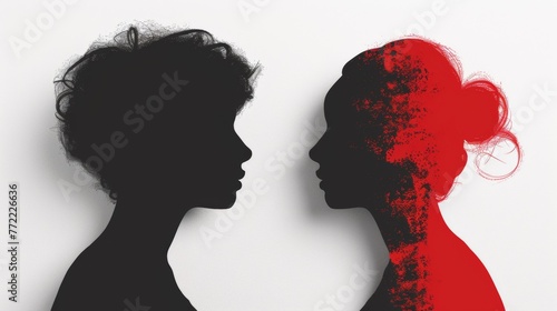 2, silhouette, woman, red, black, hair, silhouette, illustration, adult, beauty, young, female, man, human, face, portrait, abstract, head, sensuality, love, profile, view, background, 1, person, design, fashion, outline, back, lit, creativity, isolated, model, naked, idea, coiffure, shape, elegance, romance, shadow, caucasian, looking, concept, computer, graphic, white, background, colours