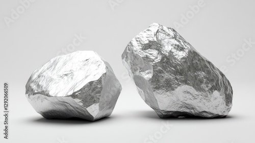 Two silver rocks on white background; studio shot; wealth, luxury concept