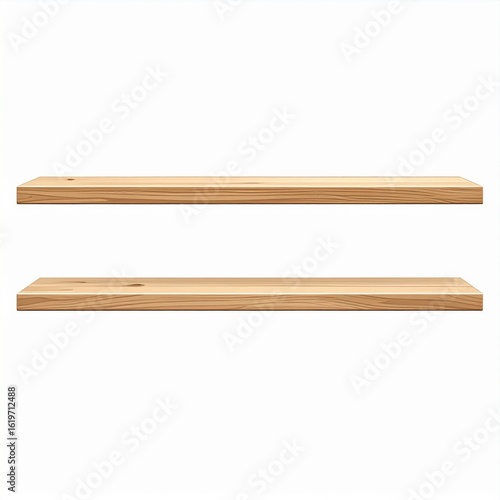 Two Simple Light Brown Wooden Shelves on a White Background for Storage