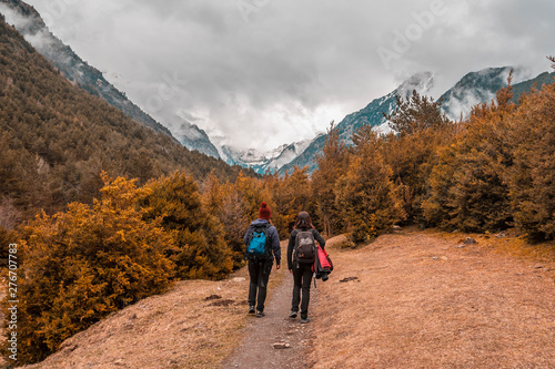 Two sisters trekking in the Aigüestortes National Park in the Pyrenees