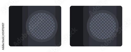 2, square, small, dark, grey, speaker, playing, music, sound, different, frequency, vector, icon, flat, illustration, isolated, white, symbol, loudspeaker, equipment, amplifier, modern, design, entertainment, electronic, bass, musical, volume, signs, system, woofer, acoustic, carrier, professional, technology, party, stereo, audio, loud, musician, melody, studio, electric, shape, power, object, realistic, buttons, classical