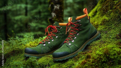 2, sturdy, touristic, boot, adorned, vibrant, lace, sole, lay, gracefully, nestled, hugs, verdant, moss, testament, rugged, beauty, forest, underbrush