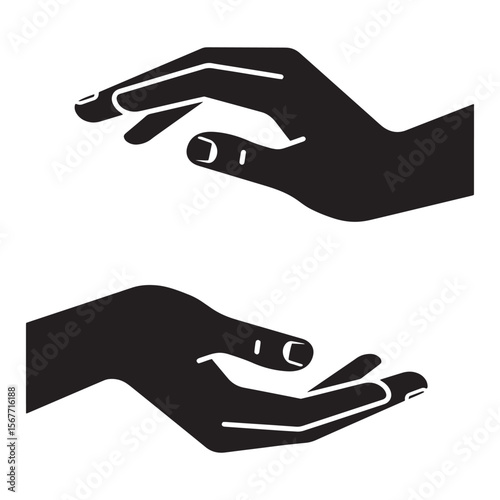 hand, black, silhouette, reaching, offering, gesture, giving, support, care, help, holding, receiving, collaboration, partnership, assistance, teamwork, generosity, compassion, protection, sharing, isolated, vector, illustration, graphic, design, art, minimalist, monochrome, white background