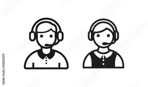 customer service, support, call center, operator, help desk, assistance, communication, contact, icon, illustration, vector, graphic, people, team, employee, staff, business, service, professional, headset, microphone, online, digital, technology, connection, dialogue, conversation, help, advice, guidance, information, feedback, satisfaction, loyalty, client, client, user, representative, agent, adviser, adviser, simple, minimalist, outline, white background, isolated, 2, pair
