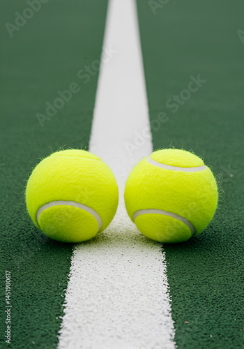 tennis, ball, court, green, white, line, sport, game, play, competition, racket, match, yellow, equipment, sport, leisure, exercise, activity, fun, skill, practice, training, professional, amateur, pair, close, up, sharpened, detail, surface, texture, center, position, symmetric, sporty, active, healthy