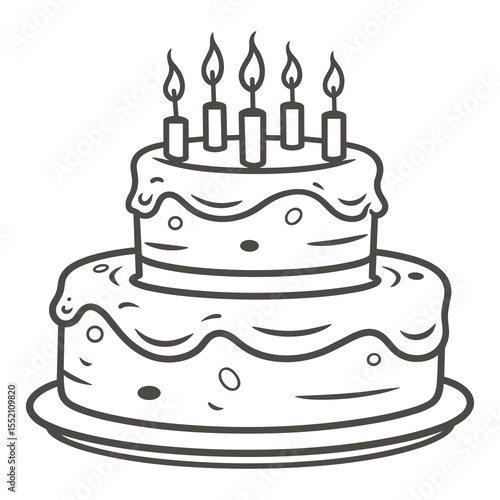 Two Tier Birthday Cake with Candles Black and White Line Art Illustration