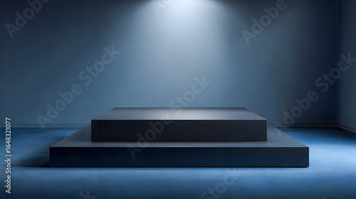 Two Tiered Platform Under Spotlight in a Blue Toned Studio Setting