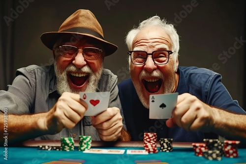 two veteran old man having fun