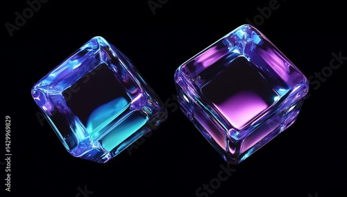 ice, cube, crystal, vibrant, colours, semitransparent, square, geometric, abstract, digital, three-dimensional, rendering, design, element, texture, glasses, shiny, glowing, neon, purple, blue, water, magenta, hallucinogen, iridescent, holographic, fusion, fashion, modern, futuristic, art, graphic, effect, background, black, dark, luxury, gem, transparent, cool, cold, drink, bar, party, element, decoration, illustration, creative