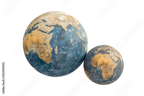 Two vintage globes showcasing Earth, illustrating geographical features. Perfect for environmental themes, education, geography studies, and travel concepts.