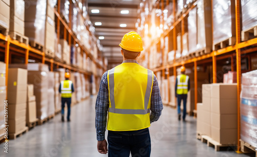 warehouse, logistic, men at work, storage, industrial, safety, hard hat, organisation, teamwork, shelf, inventory, distribution, business, factory, construction, operation, supply, manufacturing, stock, shipping, industry, safety-gear