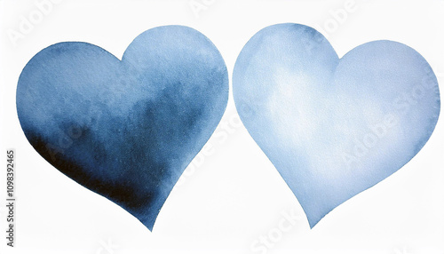 Two Watercolor Hearts Blue Shades Romantic Love Valentine s Day