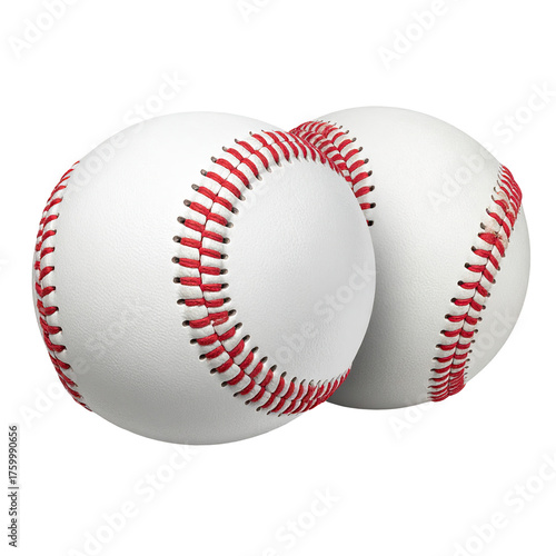 Two white baseballs, red stitching, partially overlapping, isolated against black background