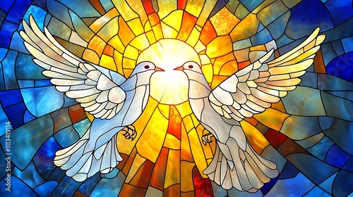 dove, peace, sun, light, stained-glass, window, art, glasses, bird, holy, spirit, religion, faith, hope, love, symbol, christianity, spirituality, purity, innocence, serenity, calmness, beauty, elegance, grace, wing, flight, divine, celestial, radiant, bright, colourful, mosaic, artwork, design, image, picture, illustration, background, texture, pattern