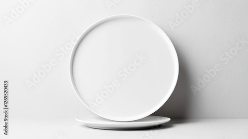 plate, white plate, ceramic, porcelain, dish, tableware, kitchen, dining, food, meal, eatery, cafes, home, interior, design, minimalism, simple, clean, modern, empty, blank, round, circle, shape, object, still life, photo, background, texture, surface, wall, concrete, grey, light, shadow, copy space, presentation, product, display, template, realistic, three-dimensional, render, studio, closeup, detail, single, 2