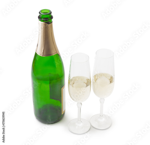 wine, sparkling wine, white wine, champaign, bottle, alcoholic, beverage, drink, food, kitchen utensile, glasses, wine glass, grape, vine-growing, vinification, vintage, fizzy, carbon dioxide, bubble, holiday, isolation