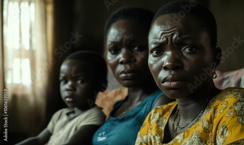 family, mother, son, children, young, woman, woman, girl, boy, portrait, portraiture, african, african american, black, dark, emotion, expression, serious, pensive, concern, thoughtful, worried, anxious, sad, unhappy, looking, eye, mouth, lip
