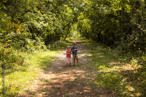 children, children, sibling, boy, girl, walking, forest, nature, outdoors, path, trail, tree, greenery, summer, sunshine, sunlight, leaf, grass, wood, adventure, exploration, childhood, innocence, friendship, bonding, peaceful, rural, natural, carefree, happiness, wonder, curiosity, discovery, environment, scenic, wilderness, shadow, golden light, relaxing, warm, foliage, playtime, companionship, young, countryside, fresh air, freedom, serenity, joyful, calmness, sunrise, minnesota, us, two people, male, female, white