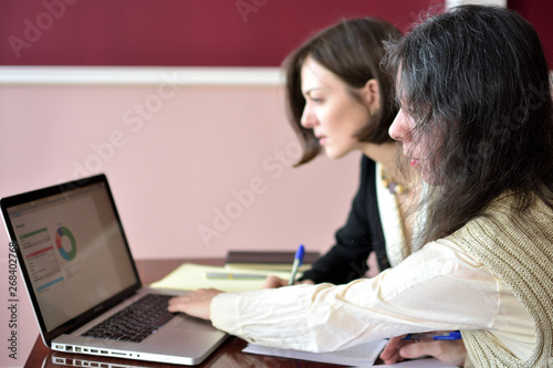 solution, solution, assistance, document, female, smiling, girl, portrait, employee, work, sitting, laptop, colleague, person, job, executive, professional, teamwork, team, businesswoman, young, manager, meeting, people, woman, office, business