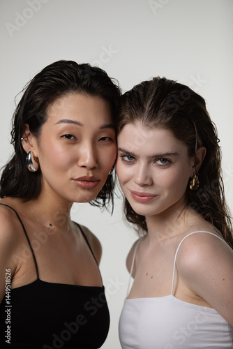 attractive, beautiful, beauty, cheerful, closeup, closeup, copy space, couple, crop, cropped, day, daylight, diverse, eye, face, facial, female, friends, friendship, girlfriend, glamour, hair, happy, head, head shot, health, healthy, indoor, indoor, jewellery, joy, make up, make-up, mouth, multiracial, natural, portrait, pose, posing, pretty, sensual, skin, smile, smiling, studio, together, togetherness, woman