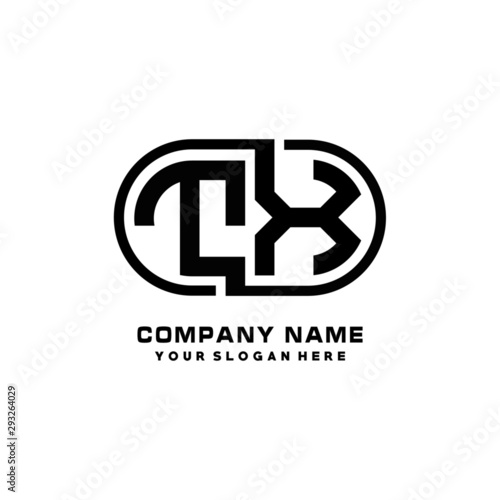 TX initial letters looping linked oval elegant logo blue, black