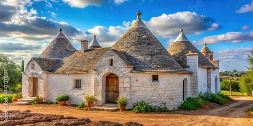 Typical Apulian farmhouse with a trullo in Puglia, rustic house, italy