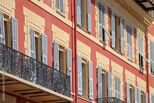 Typical facades and windows of Nice, south of France
