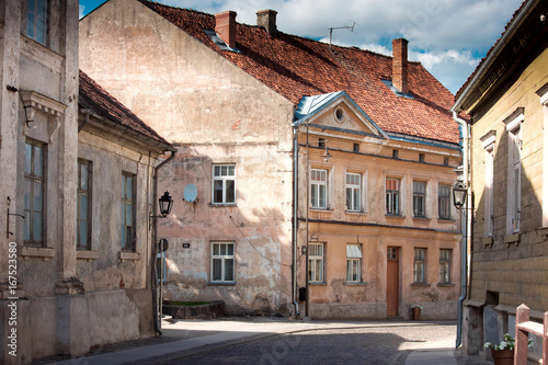 Typical houses in latvian city Kuldiga. Street architecture panorama. Kuldiga is a small town in western Latvia