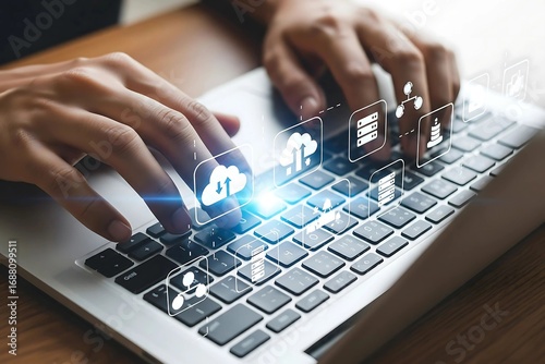 laptop, typing, hand, keyboard, technology, digital, business, information technology, innovation, cyberspace, network, online, futuristic, artificial intelligence, data storage, professional, workplace, cyber, virtual, computing, connectivity, photorealistic, computer, hand, office, working, work, finger, woman, communication, closeup, closeup, people, key, computer keyboard, buttons, information