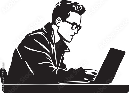 Typing Through Shadows A Man Emotional Release on His Laptop