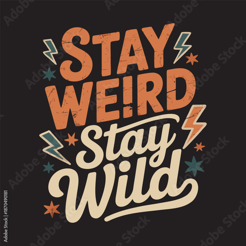 typography, text, lightning, bolt, star, retro, vintage, 70s, groovy, quote, inspiration, motivation, wild, weird, lifestyle, positive, graphic, colours, texture, distressed, aesthetic, orange, green, yellow, sticker, apparel, freedom, bold