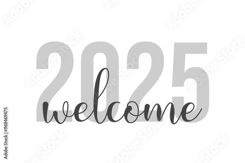 Typography Welcome 2025 gray gradation color isolated on white background. Design banner posters, greeting card, stickers, cards 2025. Suitable as printed images on diary covers, t shirts, mugs, etc.