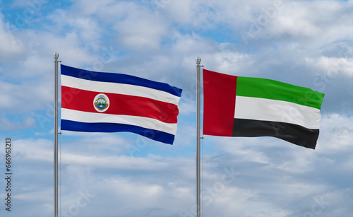 UAE and Costa Rico flags, country relationship concept