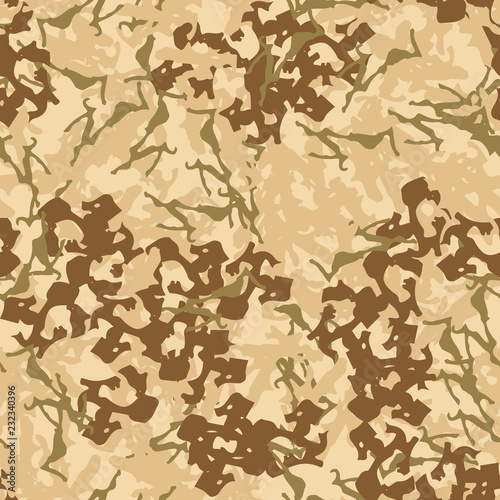 UFO military camouflage seamless pattern in different shades of beige, brown and green colors