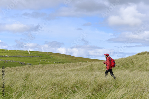 horizontal, outdoors, day, woman, one person, rural scene, landscape, hill, field, idylli, tranquil scene, scenic, vacation, tour tourism, hiker, britain, scotland, shetland, yell, grass, cloud, sky, adventure, sunny, britain, scottish, europa, western europe, european, great britain, british, weather, adventurous, concept, outside, daytime, 60s, 60s, woman, lady, lady, female, single person, countryside, rural, landscape, scenery, view, hill, hillside, field, calmness, scenic, get-away, get-away, holiday, vacation, vacationing, holiday maker, holiday maker, hiking, hiker, rambler, rambling, trekking