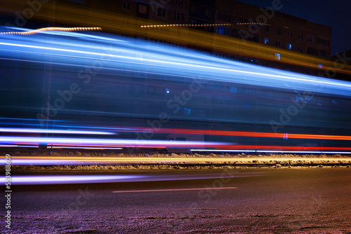 Ukraine - winter, the city during a blackout, after Russian missile strikes on the country's energy sector. Light glare from cars and public transport. Close-up.
